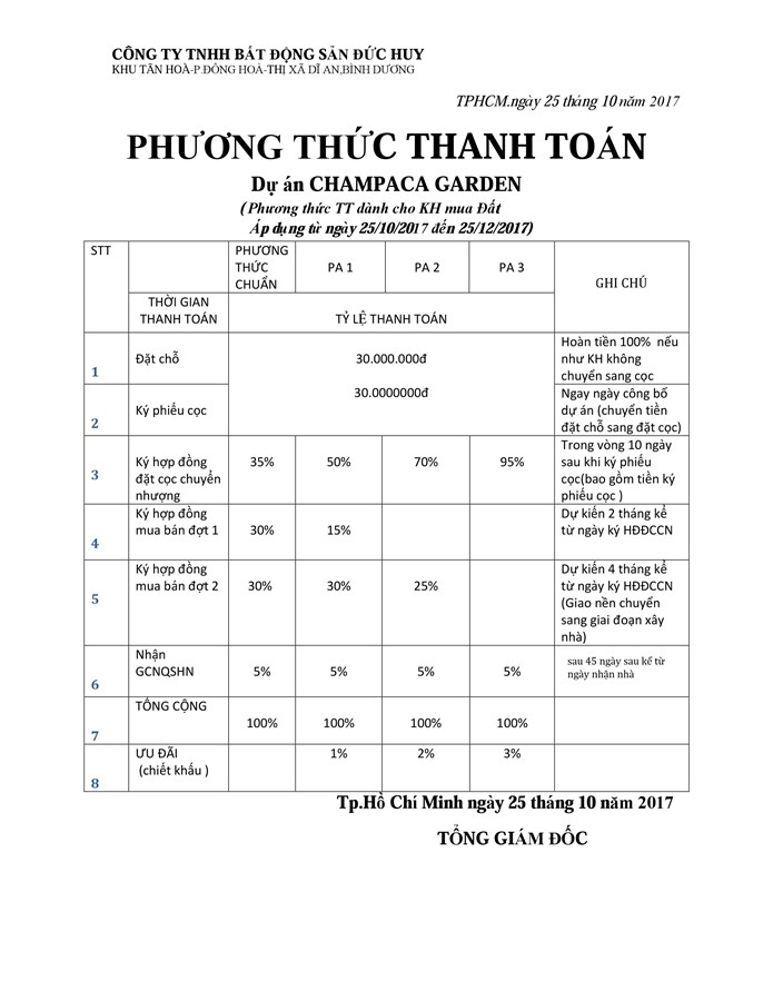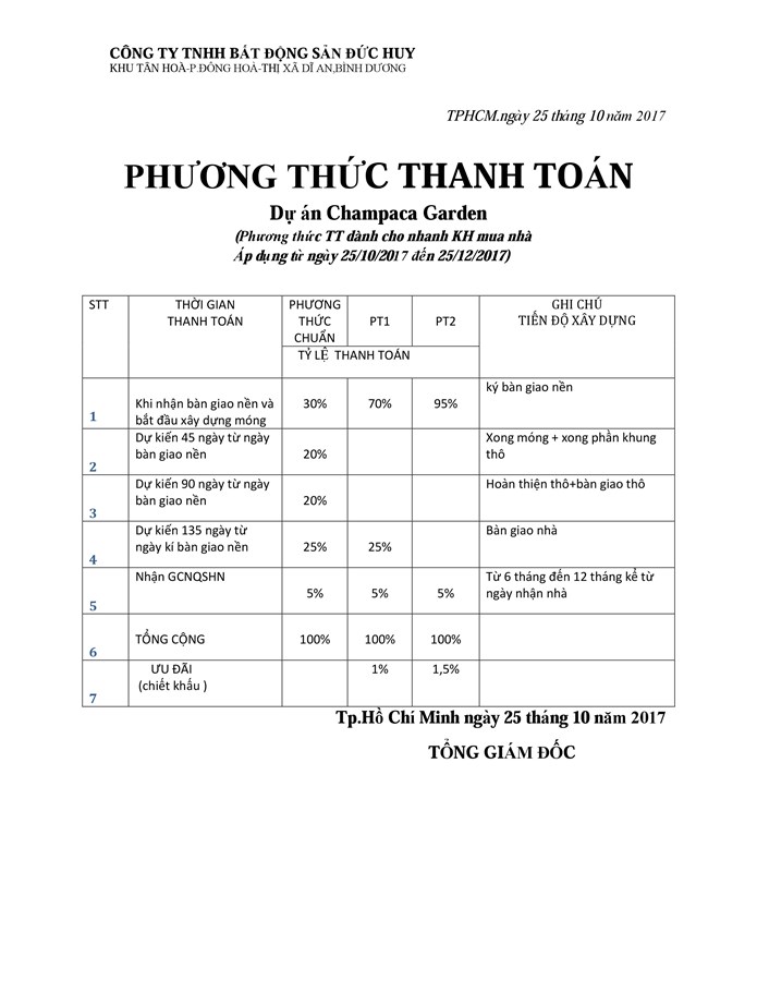 Lộ trình thanh toán Champaca Garden