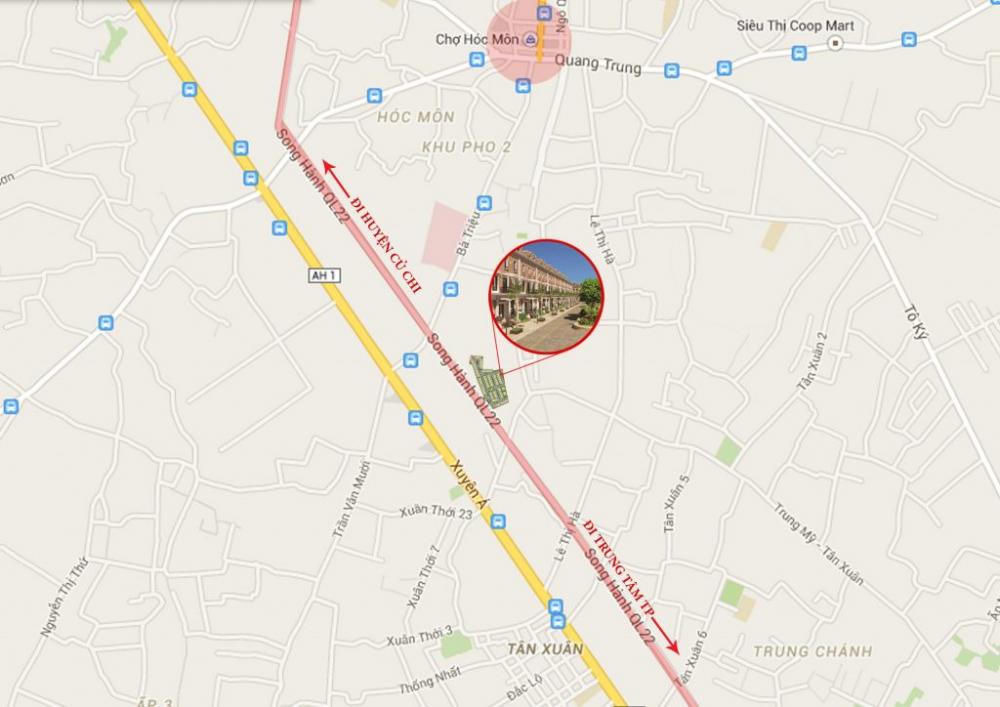 - Đối diện UBND huyện Hóc Môn mới theo quy hoạch