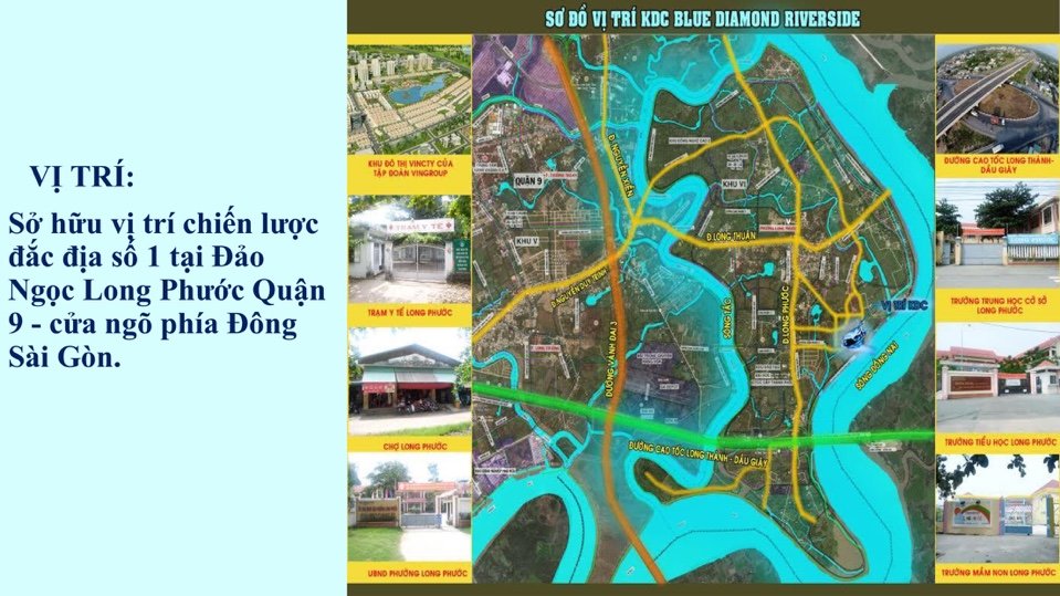 Blue Diamond Riverside sở hữu vị trí đắc địa, Đảo Ngọc Long Phước, quận 9, cửa ngõ phía Đông Tp.HCM.