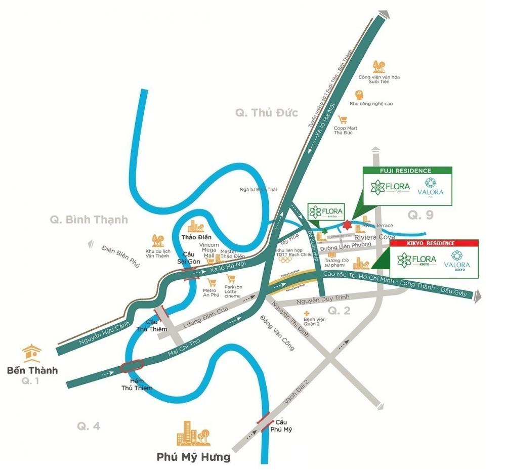 Valora Fuji tọa lạc trên đường Phước Hữu, phước Long B, quận 9, Tp.HCM. Đây là tại vị trí không chỉ thuận lợi về giao thương nhờ hệ thống hạ tầng phát triển mạnh mẽ như đường cao tốc Tp.HCM - Long Thành - Dầu Giây, đường Vành Đai 2, cầu và hầm Thủ Thiêm, tuyến Metro số 1 Bến Thành - Suối Tiên... mà còn là một nơi an cư cực kỳ lý tưởng vì tọa lạc trong vùng sinh thái quận 9 với môi trường sông nước và thiên nhiên trong lành bậc nhất Tp.HCM.