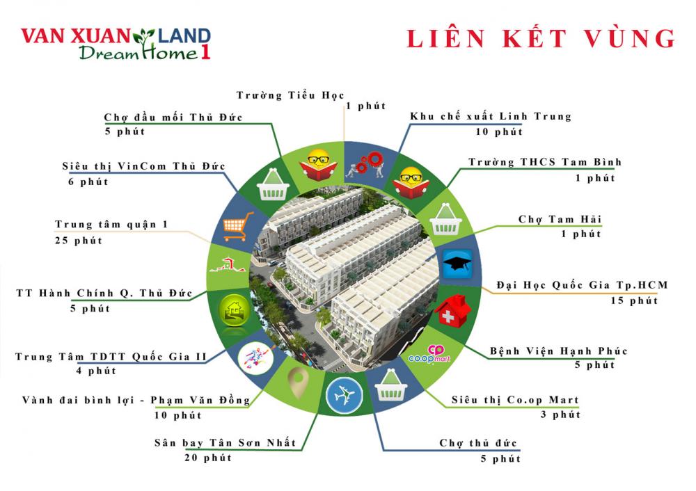 Với vị trí đắc địa của mình, dự án Vạn Xuân Tam Bìnhcho phép cư dântiếp cận đầy đủ các tiện ích phục vụ cuộc sống gồm chăm sóc y tế,giáo dục, dịch vụ thương mại, ngân hàng, hành chính: