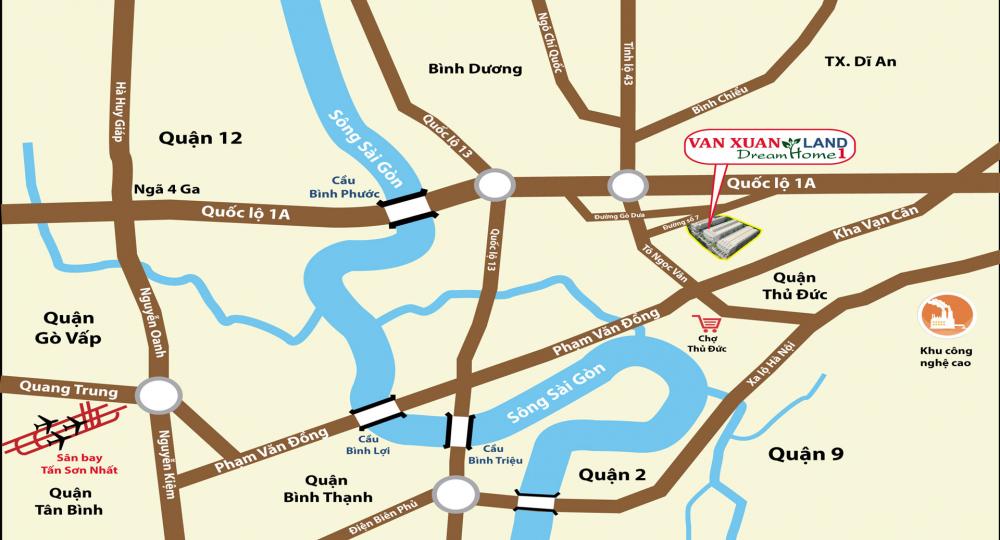 Nằm ở phía Tây Bắc quận Thủ Đức, Khu nhà ở Vạn Xuân Tam Bình là cơ hội lý tưởng cho an cư và đầu tư lâu dài. Dự ántiếp cận dễ dàng vớicác dịch vụ thương mại, chăm sóc y tế, phát triển giáo dục, không chỉthỏa mãn nhu cầu an cư mà còn mở ra một kênh đầu tư BĐShiệu quả do tính thanh khoản cao.