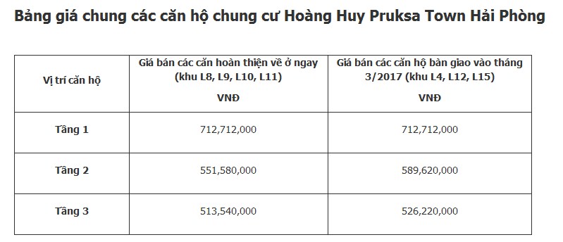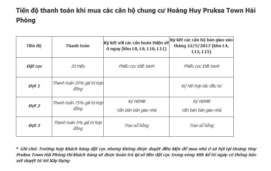 Lộ trình thanh toán Hoàng Huy Pruksa Town
