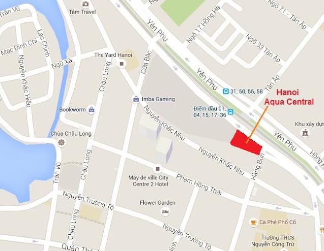 Hà Nội Aqua Central nằm ở vị trí vô cùng đắc địa, góc giao nhau giữa hai tuyến phố chính của TP. Hà Nội đó là Yên Phụ và Hàng Bún. Đặc biệt, chung cư 44 Yên Phụ còn có cổng sau tọa lạc trên đường Nguyễn Khắc Nhu.