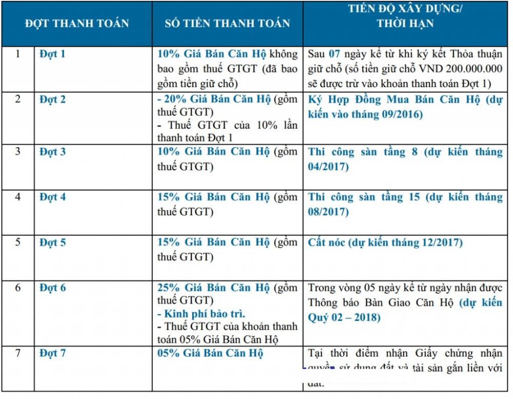 Lộ trình thanh toán Hà Nội Aqua Central