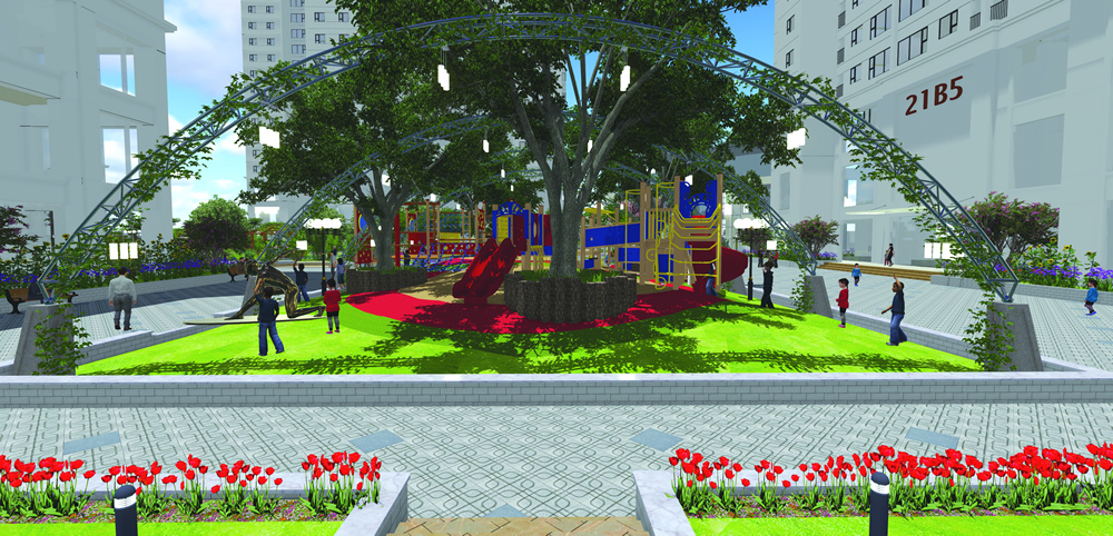 Hệ thống trường học tại dự án liên cấp từ mẫu giáo tới cấp 3. Chung cư có 3 tầng trung tâm thương mại và những dịch vụ tiện ích, siêu thị Metro.
