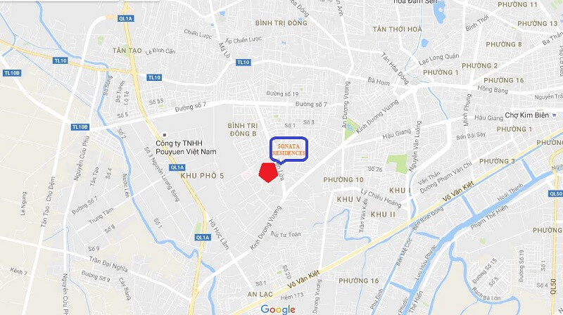 Chung cư Sonata Residences tọa lạc ở vị trí đắc địa, nằm trên đường Tên Lửa, quận Bình Tân, Tp.HCM. Từ dự án, cư dân dễ dàng di chuyển tới trung tâm quận Bình Tân, quận Phú Nhuận, quận 6, quân 11 và các khu vực lân cận khác.