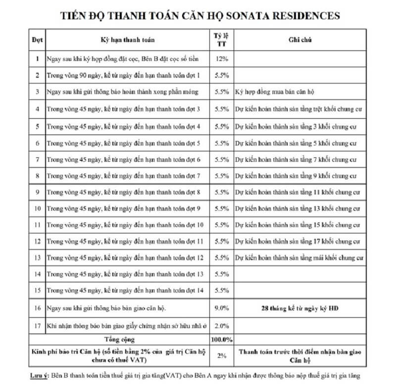 - Hỗ trợ 1 năm phí quản lý tại chung cư Sonata Residences