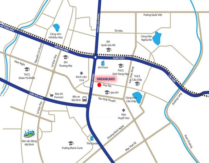 Dream Land Bonanza nằm ở số 23 Duy Tân, đây là vị trí đắc địa, độc đáo nhất khu vực Cầu Giấy, Hà Nội. Dự án có phía Bắc giáp phố Duy Tân, phía Đông giáp khu đất của Công ty Ford Thăng Long, phía Tây giáp khu đất của Ngân hàng BIDV, phía Nam giáp khu đất Công ty CP Thiết bị Y tế Medinsco và Công ty Bưu chính Viễn thông Liên tỉnh.