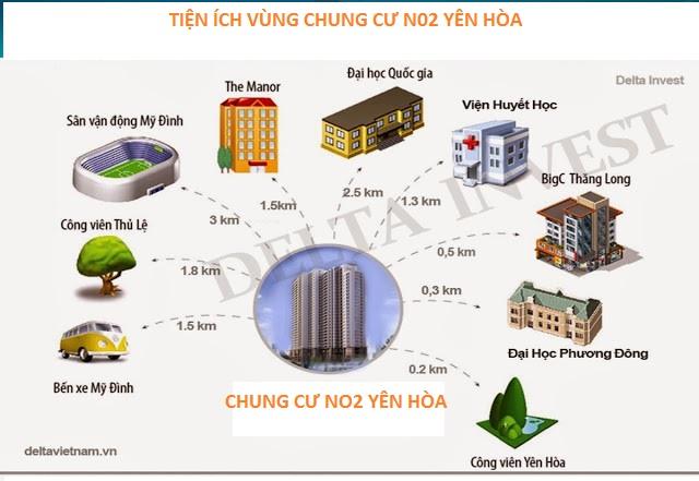 Dự án chung cư Yên Hòa Condominium N02 Yên Hòa được thừa hưởng dịch vụ và tiện ích từ những dự án xung quanh như: