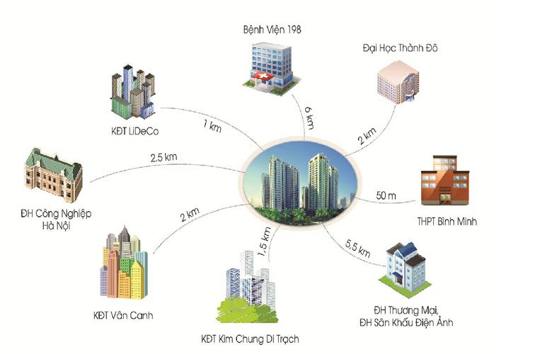 - Dự án nằm gần các KĐT như: Vân Canh, Xuân Phương, Bắc Quốc lộ 32...; gần các KCN Nam Thăng Long và Cầu Diễn