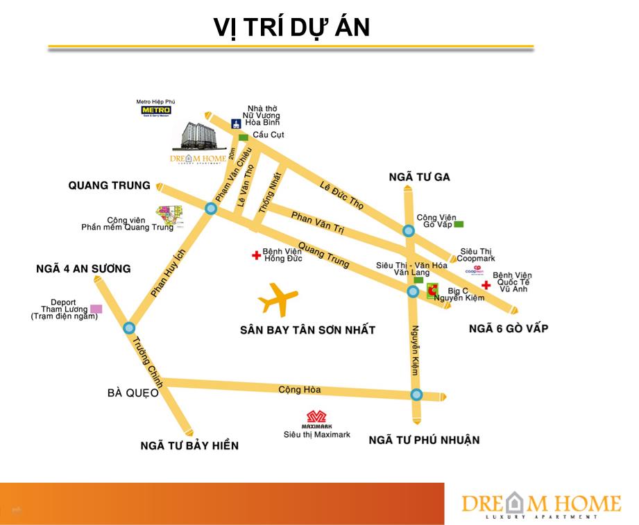 Dự án Dream Home tọa lạc tại số59, phường 14, quận Gò Vấp, Tp.HCM. Dự án nằm ngay trung tâm quận Gò Vấp nơi có khu dân cư sầm uất, bao quanh là đường nội bộ dẫn ra Phạm Văn Chiêu và Lê Đức Thọ, thuận tiện di chuyển đến các quận Tân Bình, Bình Thạnh, Phú Nhuận, Tân Phú, quận 12.