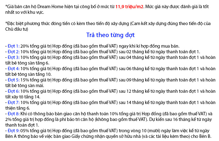 Lộ trình thanh toán Dream Home