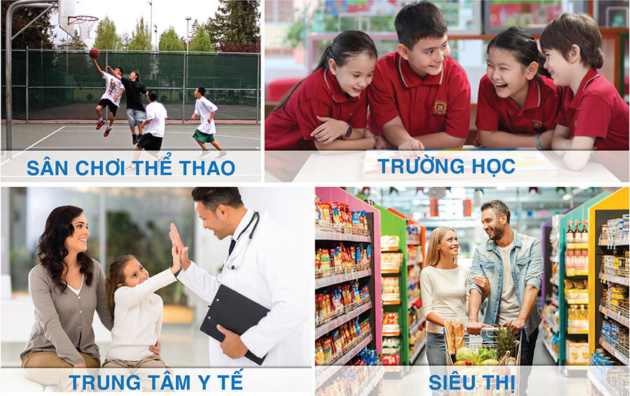 - Hồ bơi, phòng gym, khu mua sắm, khu vui chơi trẻ em,...