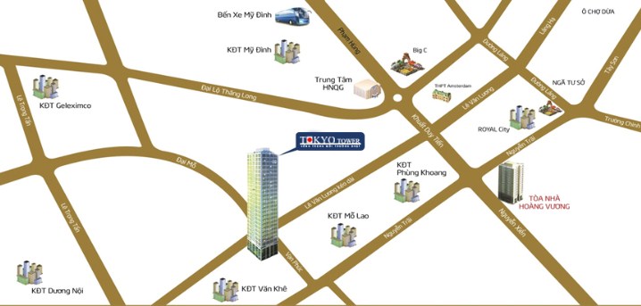 Tokyo Tower tọa lạc trong quần thể những khu đô thị mới hiện đại dọc bên tuyến đường Lê Văn Lương kéo dài, kết nối thuận tiện đến các Khu đô thị mới Văn Khê, Làng Việt Kiều Châu Âu, Dương Nội, khu biệt thự, liền kề Galaxy - Himlam, khu phố Shophouse Vạn Phúc và khu dân cư mới phường Vạn Phúc.