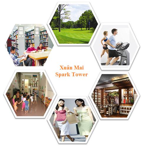 Chung cư Xuân Mai Sparks Tower sở hữu điểm độc đáo và hiện đại so với những dự án quanh khu vực chính là không gian sinh hoạt cộng đồng để cho các cư dân có một công viên sinh hoạt bao gồm đầy đủ những tiện nghi như: câu lạc bộ thể hình, spa, thẩm mỹ, khu chăm sóc sức khỏe, lối đi dạo, sân cầu lông, vườn trẻ ngoài trời và trong nhà, phòng sinh hoạt cộng động được bố trí ở tầng 1...