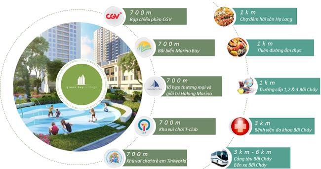 Tọa lạc trong quần thể Hạ Long Marina, khu đô thị du lịch hiện đại đầu tiên bên bờ vịnh Hạ Long, Quảng Ninh, Green Bay Premium thừa hưởng tất cả hạ tầng, tiện ích đẳng cấp toàn khu, kết nối thuận lợi với những trung tâm thương mại, dịch vụ, du lịch lớn của thành phố như rạp chiếu phim tiêu chuẩn quốc tế CGV Cinema, tổ hợp thương mại và giải trí Halong Marine Plaza, khu vui chơi trẻ em TiNiWorld, bãi biển Marina Bay, khu ẩm thực, chợ đêm Hạ Long, bến xe Bãi Cháy, trung tâm y tế, trường học quốc tế,...