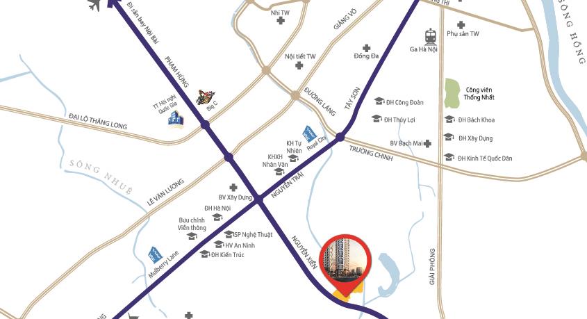 - Được bao bọc bởihệ thống cơ sở hạ tầng đồng bộ: Đại Lộ Chu Văn An, Đường Nguyễn Xiển,Nguyễn Trãi, hệ thống đường vành đai trên cao,Hệ thống đường sắt Cát Linh – Hà Đông...giúp việc đi lại, di chuyển sang các quận, huyện khác của Hà Nội và các vùng lân cậncủa cư dân thuận tiện, tiết kiệm thời gian.