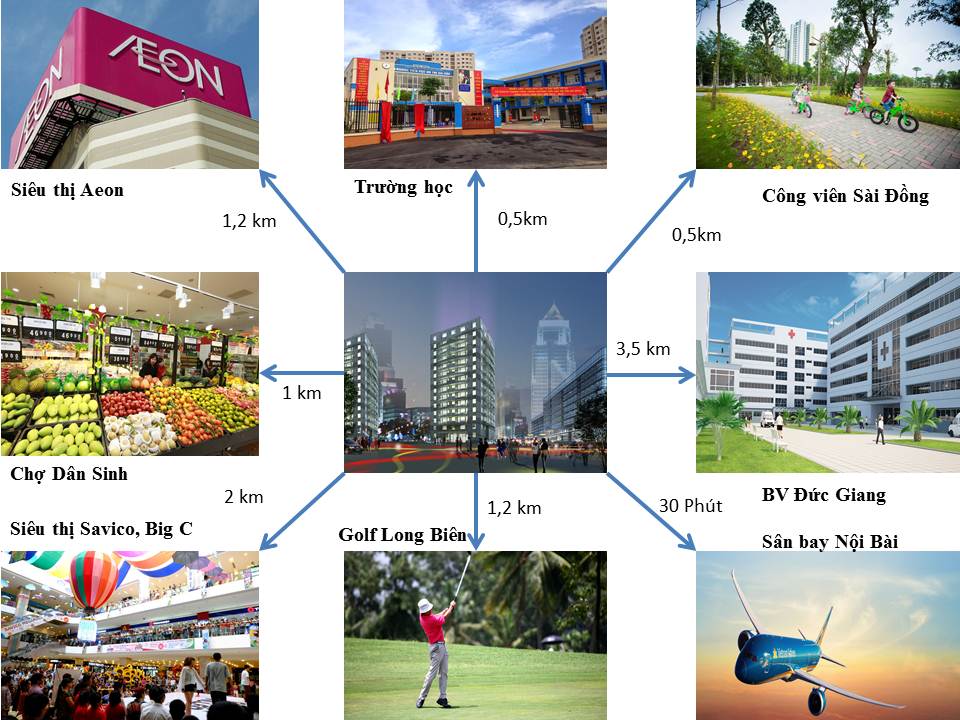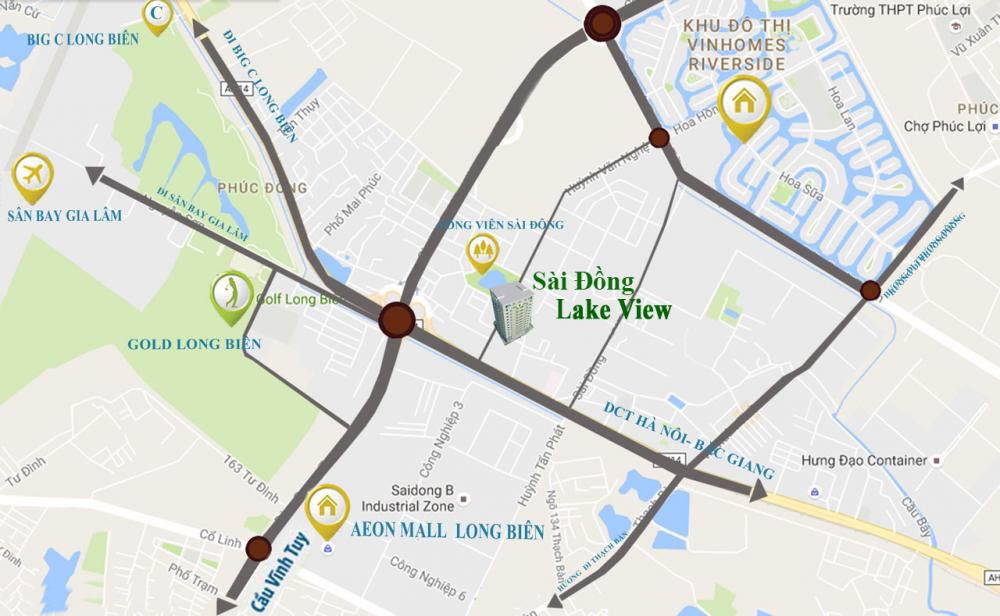 Căn hộ Sài Đồng Lake View được thừa hưởng toàn bộ hệ thống tiện ích, hạ tầng đồng bộ, hiện hữu xung quanh dự án. Cư dân chỉ mất chưa tới 10 phút là đến được hồ công viên Sài Đồng, đại siêu thị AEON Mall, BigC, Vincom, hệ thống trường học đạt chuẩn, bệnh viện đa khoa Đức Giang...