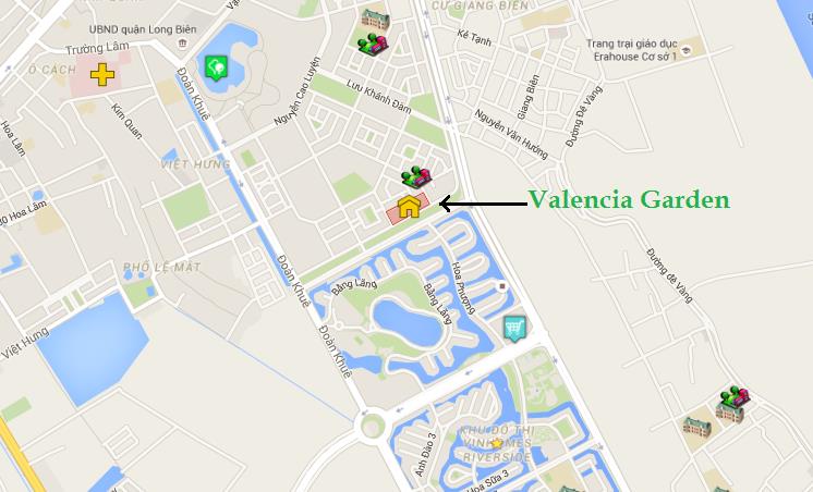 Từ chung cư Valencia Garden dễ dàng di chuyển tới các khu vự khác. Dự án cách cầu Vĩnh Tuy 3km, cách trung tâm TP. Hà Nội 7km, cách quốc lộ 5 khoảng 2km, cách Ecopark khoảng 7km, cách Gamuda khoảng 7km. Với vị trí thuận lợi, Valencia Garden hứa hẹn là nơi an cư, nghỉ dưỡng lý tưởng cho cư dân Thủ đô.