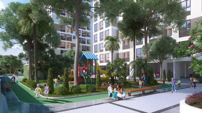 Những khoảng cây xanh đan xen giúp hài hòa cảnh quan, không gian kiến trúc tổng thể, đồng thời góp phần điều hòa không khí, tạo không gian nghỉ ngơi thư giãn, tất cả đã kiến tạo một môi trường sống chất lượng cho cư dân.