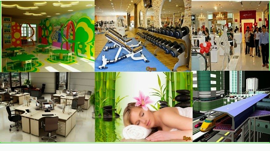 Thảm cỏ, vườn hoa cây xanh bao quanh toà nhà kết hợp với cỏ bậc thềm lối vào hấp thụ bức xạ nhiệt, tạo nên bóng mát cho công trình và tăng thêm vẻ đẹp mỹ quan cho chung cư. Hệ thống thang máy trang bị cho chung cư gồm 4 thang máy tải khách và 1 thang máy phục vụ chở hàng, phân chia riêng biệt cho 21 tầng nhà ở và 5 tầng trung tâm thương mại.