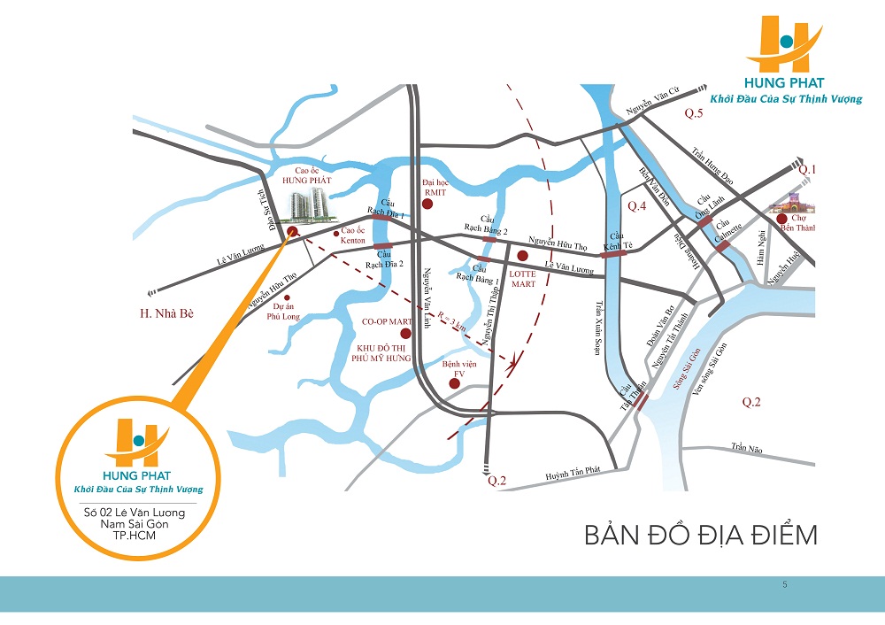 Căn hộ Hưng Phát nằm ngay góc đường Lê Văn Lương và Đào Sử Tích, thuộc xã Phước Kiển, huyện Nhà Bè. Chỉ cách Phú Mỹ Hưng 1,5 km, từ căn hộ Hưng Phát bạn dễ dàng di chuyển vào trung tâm thành phố, qua quận 2 bằng Phú Mỹ, qua quận 8, quận 5 bằng cầu Nguyễn Văn Cừ.