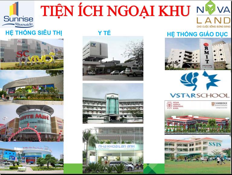 Các cư dân của Sunrise Riverside sẽ được hưởng nhiều tiện ích nội khu có đầy đủ của cả một thành phố: Dịch vụ chăm sóc sức khỏe, Gym, Sauna, khu đi bộ, hồ bơi tràn, siêu thị, nhà hàng, shopping mall… riêng biệt.