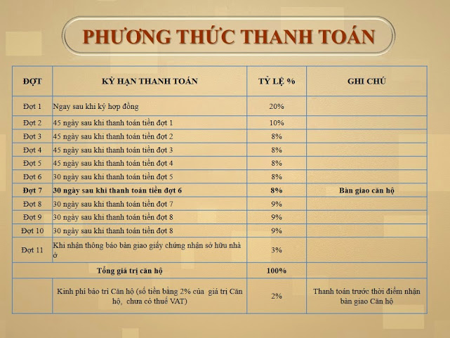 Lộ trình thanh toán Chung cư 12 View