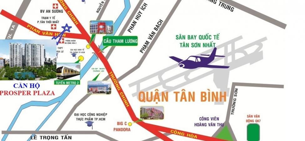 Prosper Plaza nằm ngay mặt tiền đường Phan Văn Hớn lộ giới 4m, tiếp giáp với tuyến đường Trường Trình, phường Tân Thới Nhất, quận 12, Tp.HCM. Đây là khu vực đã có hạ tầng hoàn thiện và đồng bộ. Dự án còn nằm liền kề ga tàu điện ngầm thuộc tuyến Bến Thành - Tham Lương, cạnh đường quốc tế Xuyên Á, kết nối dễ dàng tới các qận Gò Vấp, Tân Phú, Tân Bình, Phú Nhuận, quận 1, quận 3 thông qua đường Trường Chinh - Cộng Hòa.