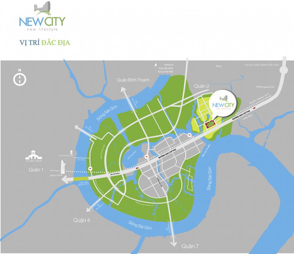New City Thủ Thiêmcó vị trí vô cùng đắt đỏ khi nằm ngaytrên mặt tiền đường Mai Chí Thọ, phường Bình Khánh, quận 2, Tp.HCM.