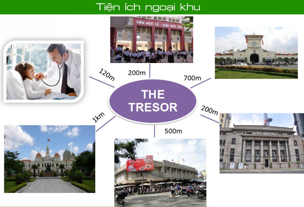 The Tresortọa lạc ngay số 39 Bến Vân Đồn, thuộc Quận 4, vị trí này nằm ngay sát cây Cầu Mống, nơi thường xuyên diễn ra các sự kiện văn hóa tầm cỡ của thành phố. Mặt khác, The Tresor còn có giá trị rất lớn về đầu tư kinh tế bởi đây là vị trí án ngữ cửa ngõ phía nam thành phố vào trung tâm sấm uất phố "wall" tại quận 1.