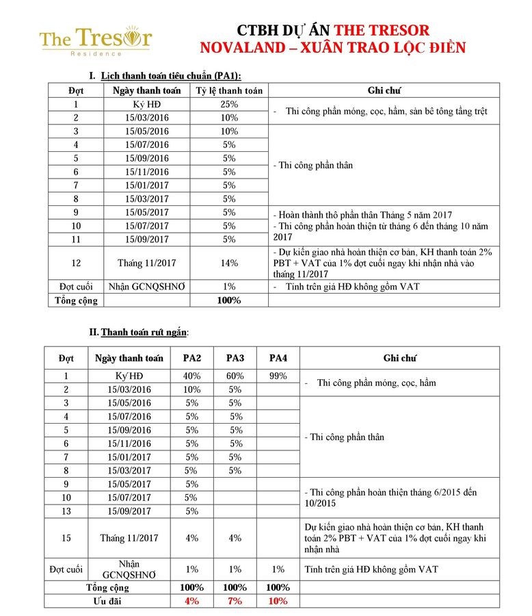 Tiến độ quý I/2016 (26/01/2016) The Tresor