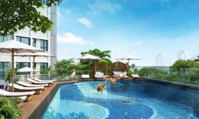 - Hồ bơi hiện đại tại tầng 3 của dự án, thiết kế này thường chỉ có ở những căn hộ cao cấp
