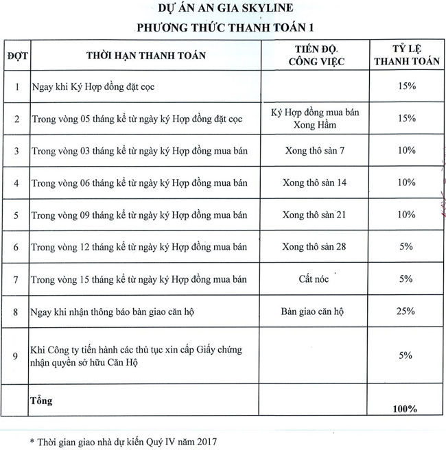 Tiến độ quý II/2016 (06/04/2016) An Gia Skyline