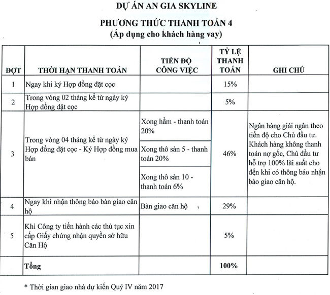 Căn hộ An Gia Skyline được Ngân hàng Vietinbank hỗ trợ cho vay 70% giá trị căn hộ với nhiều chính sách lãi suất ưu đãi nhất cho khách hàng có nhu cầu vay Ngân hàng.