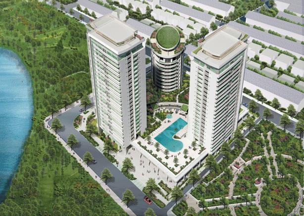 - Hệ số sử dụng đất 3,58, Gồm 290 căn hộ có diện tích từ 123~533m2 và 14 căn shop diện tích từ 138~486m2 trong 3 block nhà cao từ 13~26 tầng.