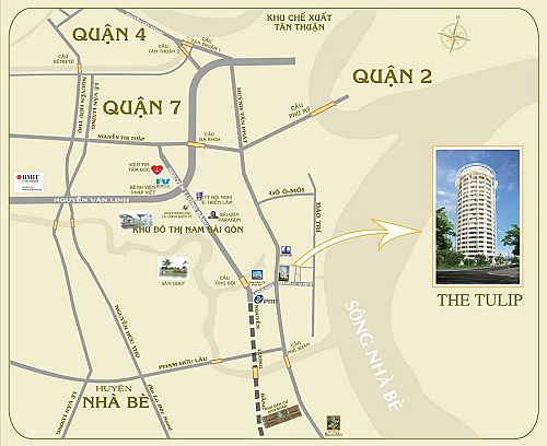 Dự án Tulip Tower tọa lạc tại địa chỉ15 Hoàng Quốc Việt, phường Phú Thuận, quận 7, Tp.HCM. Dự áncáchKhu đô thị mới Phú Mỹ Hưng 400m, tương lai sẽ liền kề Cảng du lịch và bến du thuyền Phú Thuận của Saigon Tourist, gần Khu đô thị mới GS của tập đoàn LG, Khu công nghiệp Soài Rạp, Đô thị mới Hiệp Phước,...