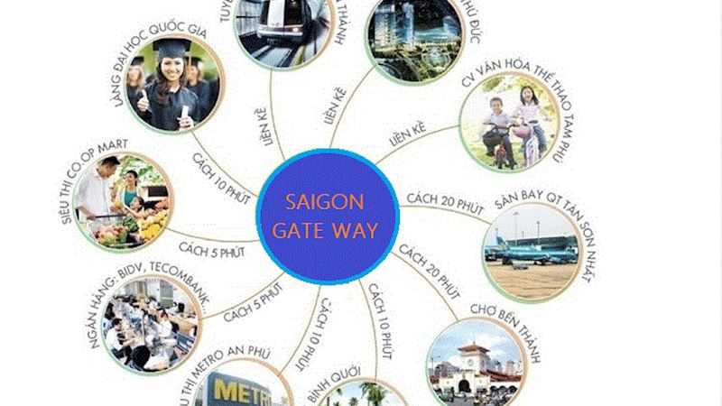 Dự án Căn hộ Saigon Gateway cũngliền kề với khu trung tâm thương mại sầm uất nhất khu vực làVincom Quận 9 và Vincom Thủ Đức. Trong bán kính khoảng 2km của dự áncũng có cáctiện ích hiện hữu như siêu thị Coop Mart, bệnh viện, UBND,trường học các cấp và khu du lịch Suối Tiên, Thủy Châu…