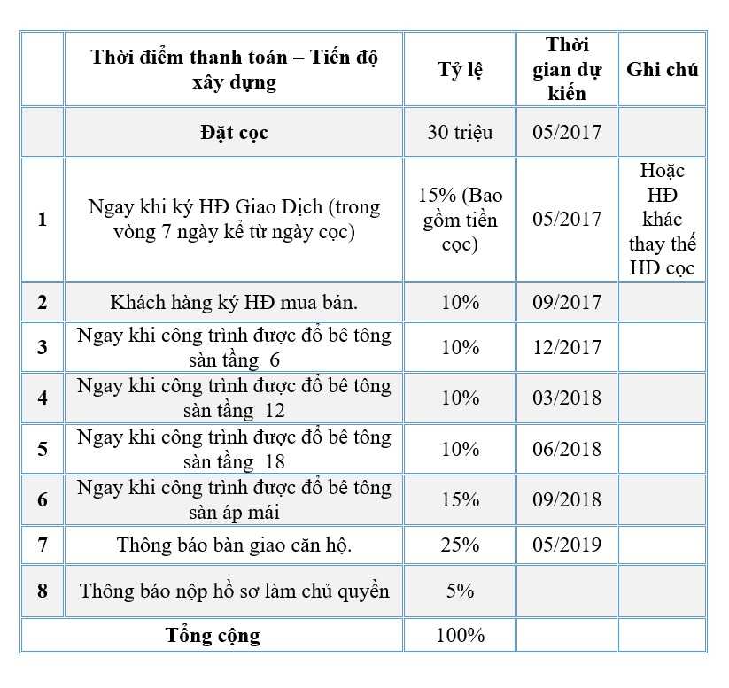 Tiến độ thanh toán:
