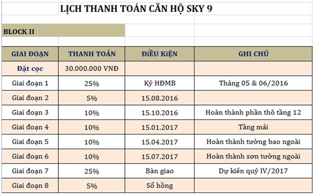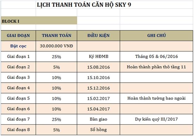 Lộ trình thanh toán Sky 9