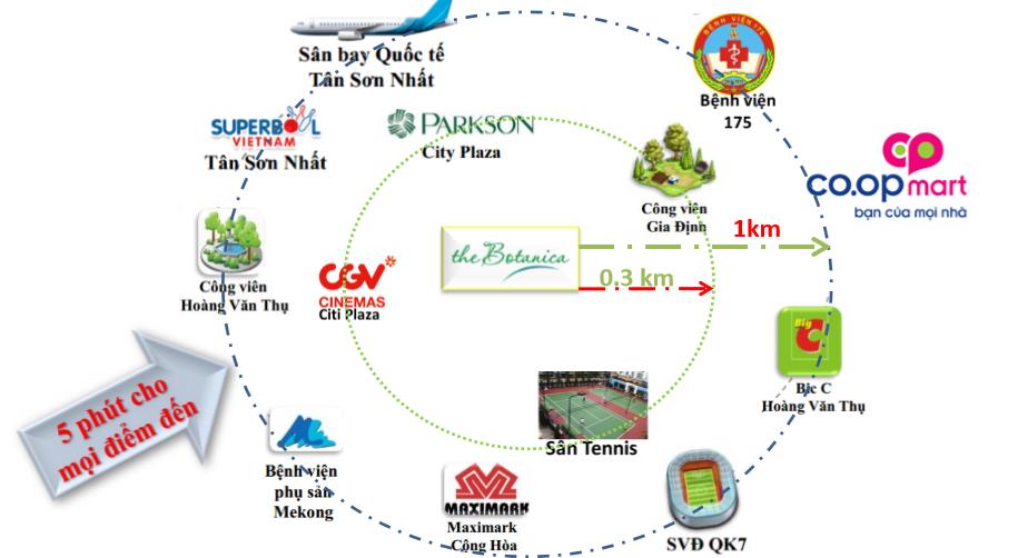 - Chỉ cách sân bay Tân Sơn Nhất 5 phút chạy xe