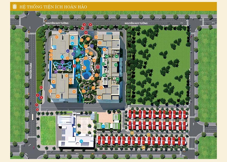 Dự án có diện tích cho đường giao thông 10.670m2; diện tích xây dựng công trình nhà ở cao tầng 8.780m2; diện tích xây dựng công trình nhà ở thấp tầng 7.507m2; diện tích dành cho hạ tầng giáo dục và cây xanh cảnh quan 15.210m2; diện tích 2 tầng hầm liên thông: 35.506m2.