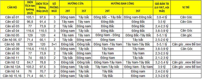 Các căn hộ T2-7 tòa 27T Các căn hộ T8-26 tòa 27T Các căn hộ T3-7 tòa 29&35T Các căn hộ T8 tòa 29&35T Các căn hộ T9-28 tòa 29&35T Các căn hộ T12 tòa 29&35T