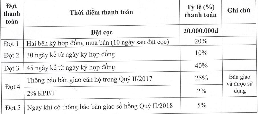Lộ trình thanh toán Đạt Gia Residence Thủ Đức