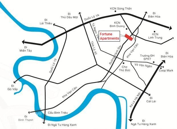 Căn hộ Fortune Apartment nằm ngay mặt tiền Phạm Văn Đồng, nối liền 3 quận là Thủ Đức, Gò Vấp và Bình Thạnh, rất thuận tiện di chuyển đến các quận nội thành và cách sân bay Tân sơn Nhất chỉ với 20 phút chạy xe.