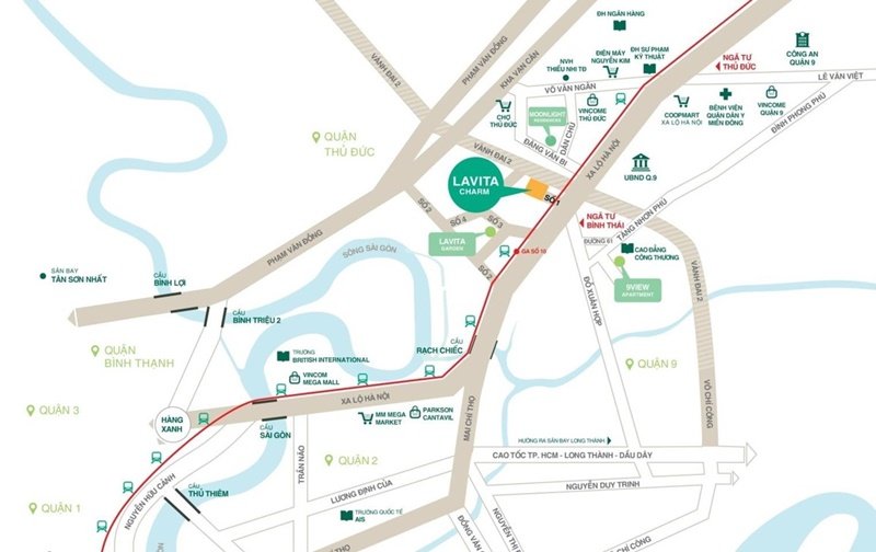 Dự án Lavita Charm thuộc khu dân cư trí thức, văn minh, gần ga Metro số 1 (500m đi bộ). Xung quanh chung cư là hệ thống tiện ích, dịch vụ bệnh viện, trường học, siêu thị, ngân hàng...