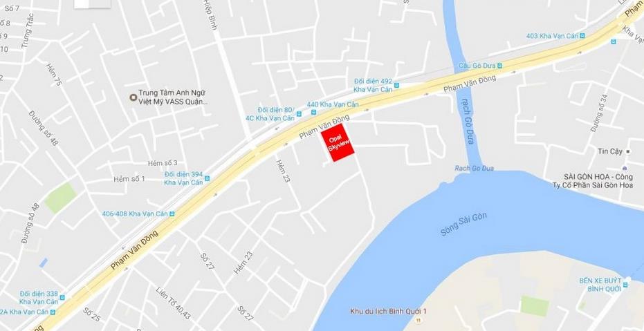 Căn hộ Opal Skyview tọa lạc trên đường Phạm Văn Đồng, thuộc phường Hiệp Bình Chánh, quận Thủ Đức, Tp.HCM. Đặc biệt, mạng lưới giao thông chính của dự án được bố trí theo các hướng Đông Bắc - Tây Nam và Tây Bắc - Đông Nam tạo liên kết thuận lợi với các trung tâm thành phố, các quận xung quanh, TP. Biên Hòa, các trục đường chính và các khu công nghiệp Nam Bình Dương.