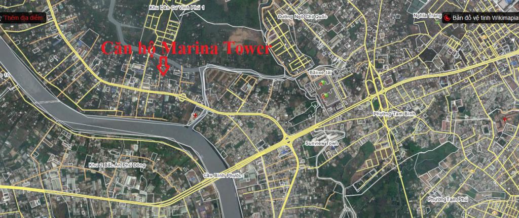 Căn hộ Marina Tower tọa lạc tại Ấp Phú hội, phường Vĩnh Phú, thị xã Thuận An, Bình Dương. Dự án sở hữu vị trí đắc địa khi nằm ngay Quốc lộ 13 (dự kiến mở rộng 60m) kết nối vào các trục giao thông trọng điểm như Quốc lộ 1A, Đại lộ Phạm Văn Đồng… Từ đây, cư dân có thể di chuyển dễ dàngtới trung tâm quận 1 và sân bay Tân Sơn Nhất chỉ trong vòng 20 phút đi xe.