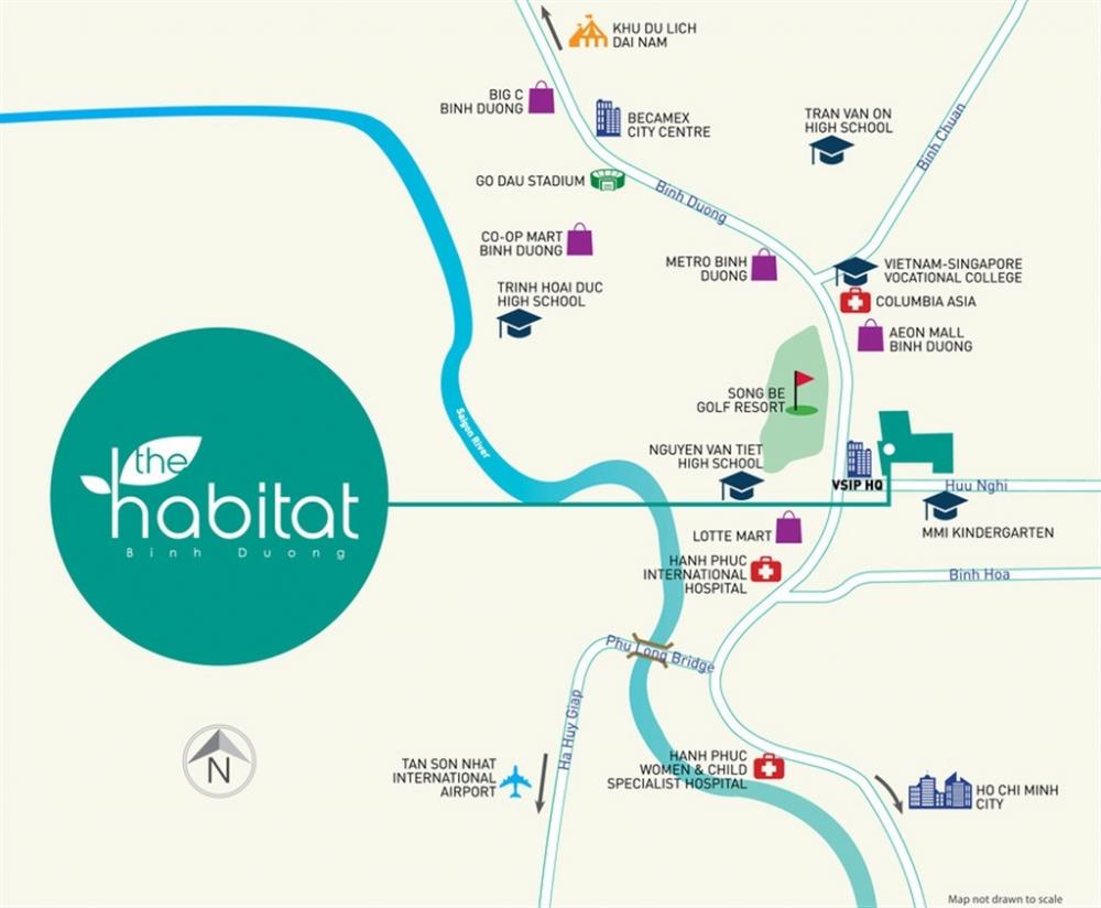 Khu căn hộ The Habitat Bình Dươngnằm ở vị trí chiến lược ngay tại cổng vào Khu công nghiệp Việt Nam Singapore (VSIP 1) thuộc thị xã Thuận An, tỉnh Bình Dương, cách Tp.HCM khoảng 17km. Từ dự án có thể kết nối dễ dàng đến: